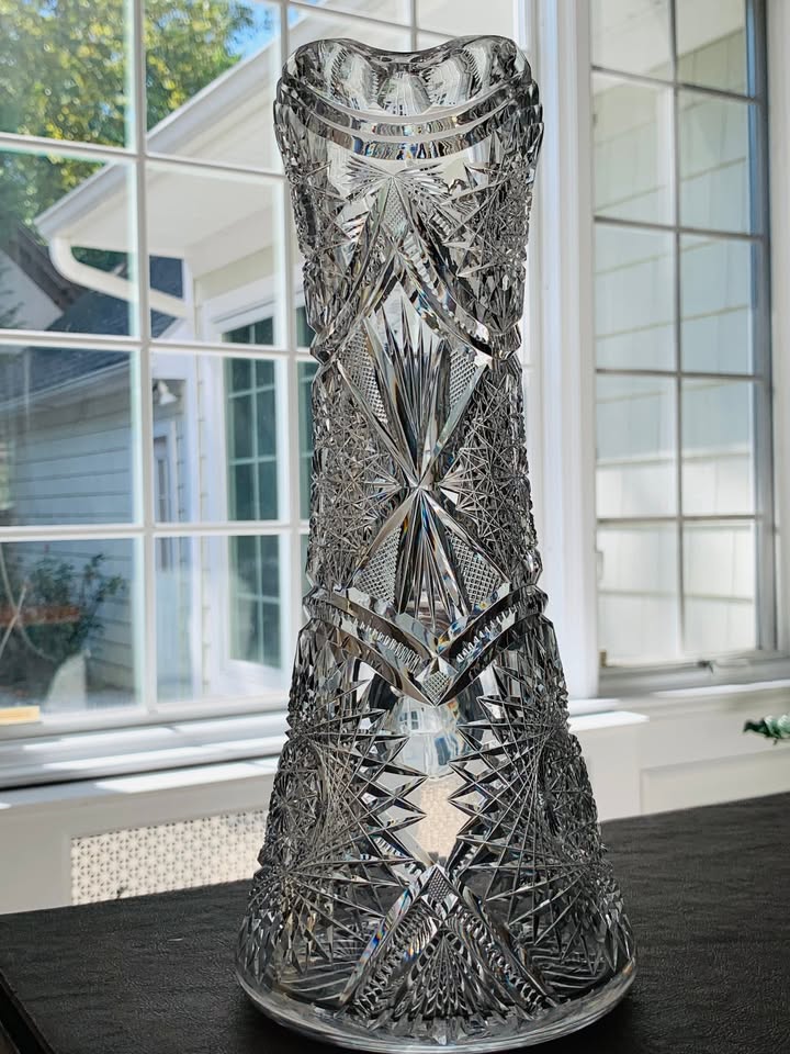 Brilliant in every way, this is a magnificent piece of cut glass from the American Brilliant era. This pitcher stands 12″ tall and is in amazing condition considering it’s over 100 years old. The blank is of exceptional quality with great clarity. Decoration with hobstars, arch, fan and diamond cuts. The base has a starburst. Really gorgeous piece of American history.
