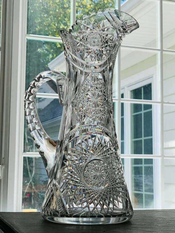 Antique American Brilliant Period (1876-1917) 12-Inch Pitcher; Excellent Condition