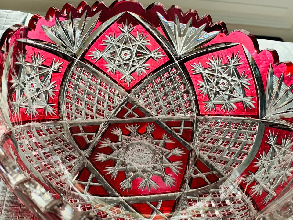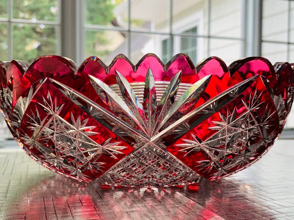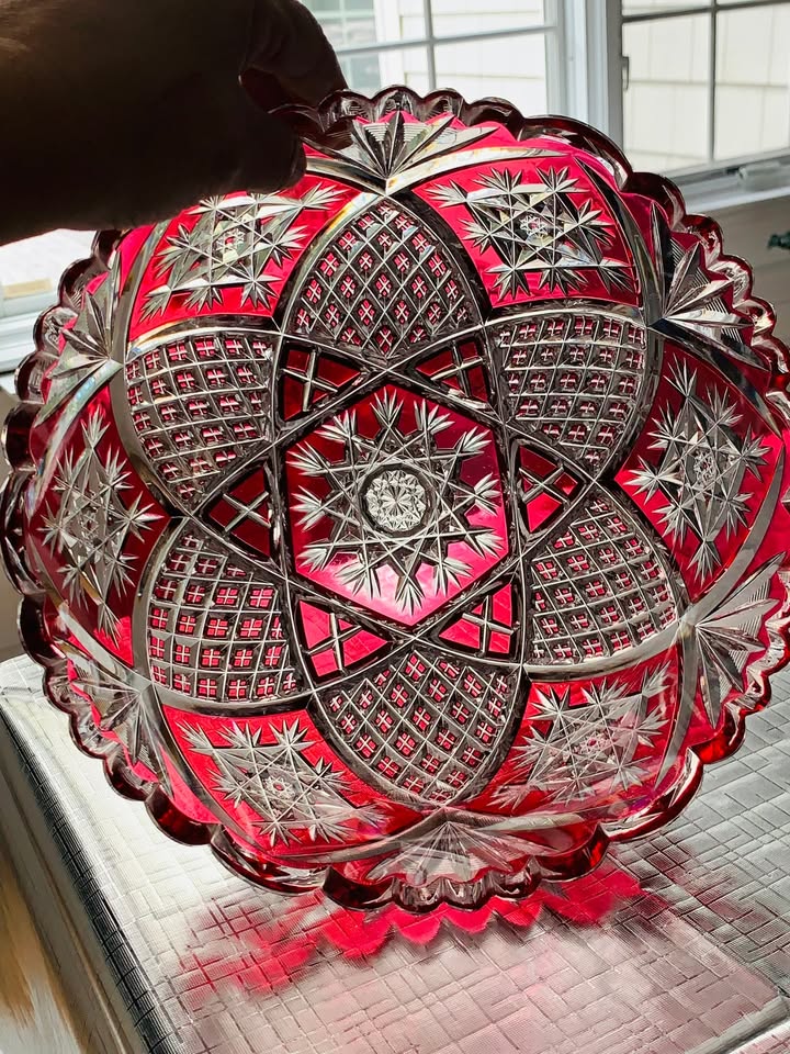 Antique Baccarat 10” Cranberry Crystal Fruit Bowl; Excellent Condition; SPECTAULAR!!!!
