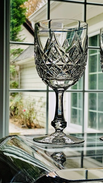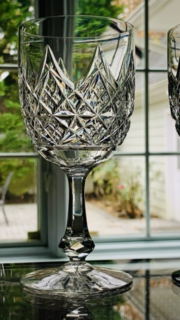 The pinnacle of high-quality crystal! The Baccarat “Colbert” pattern is considered one of Baccarat’s most luxurious and iconic patterns. Characterized by its hand-cut, intricate pointed spires on the bowl (often compared to the Eiffel Tower), a six-sided paneled stem, and a round foot with a sunburst cut. Created around 1908, it is known for being a luxurious and substantial crystal design that was popular with Russian nobility. Each glass is signed. 15 available @$80/each. I also have the matching 7.25″ Water Goblets.