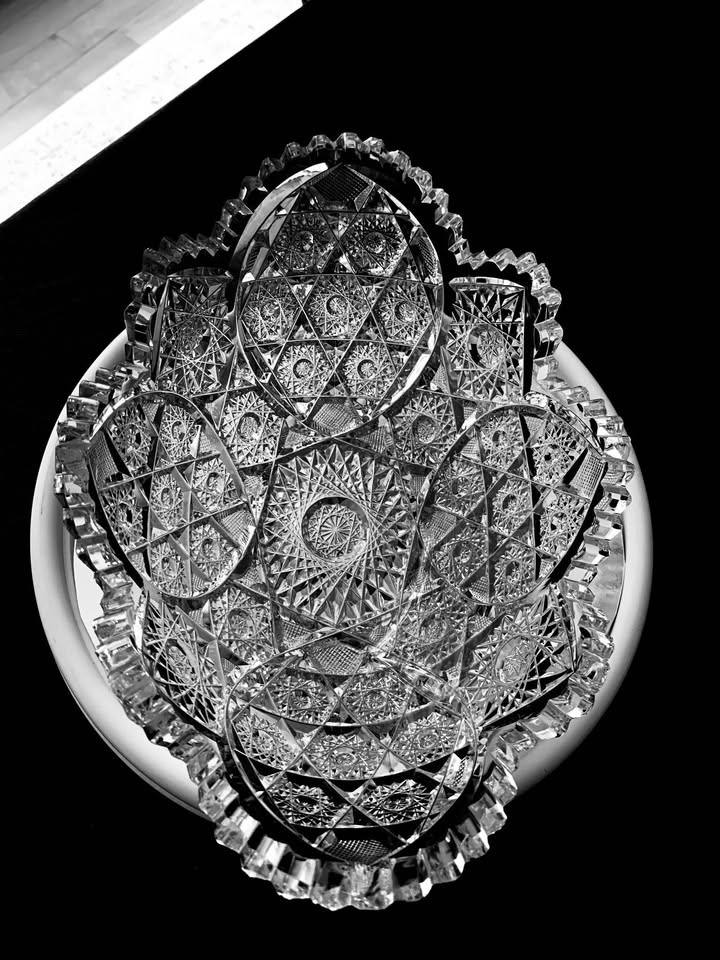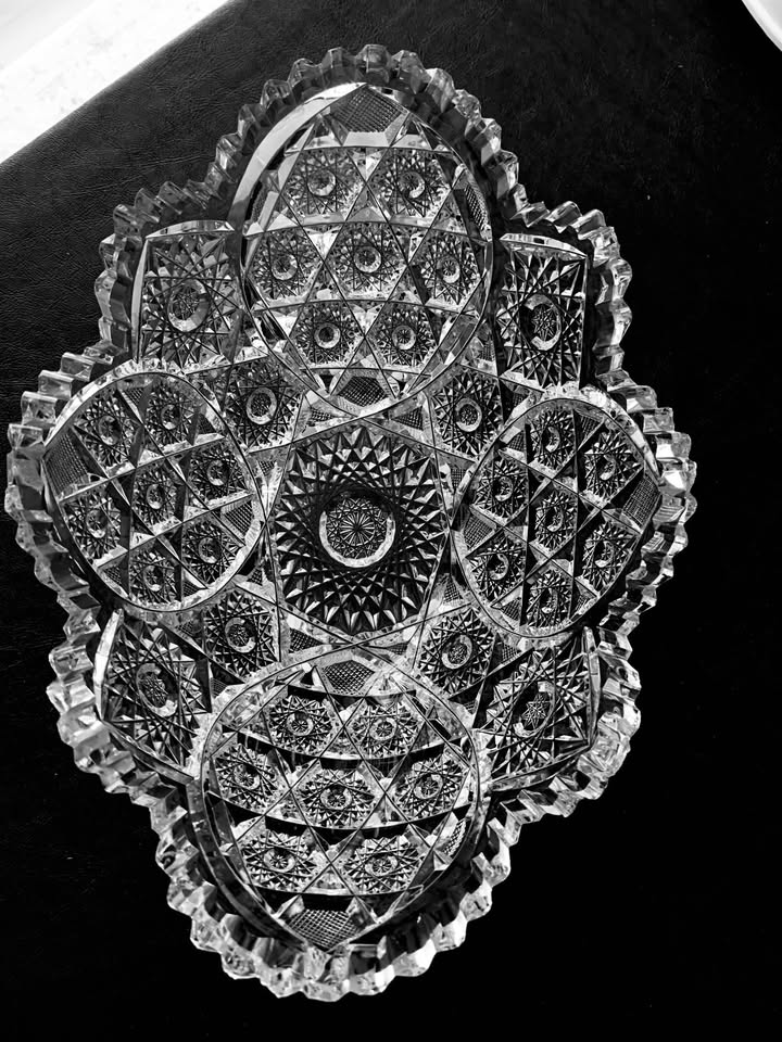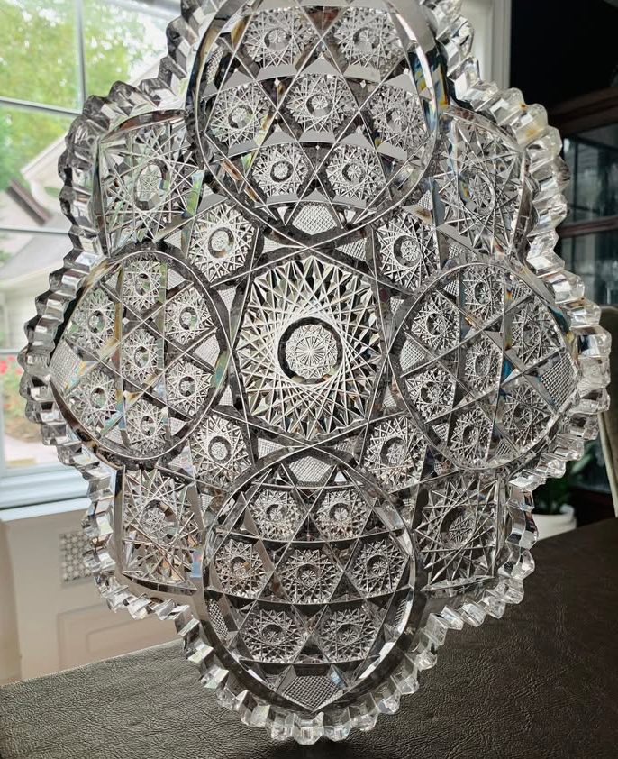 Magnificent American Brilliant Period Oval Fruit Bowl w/Hobstars & Star of David; 11″ x 8.25″