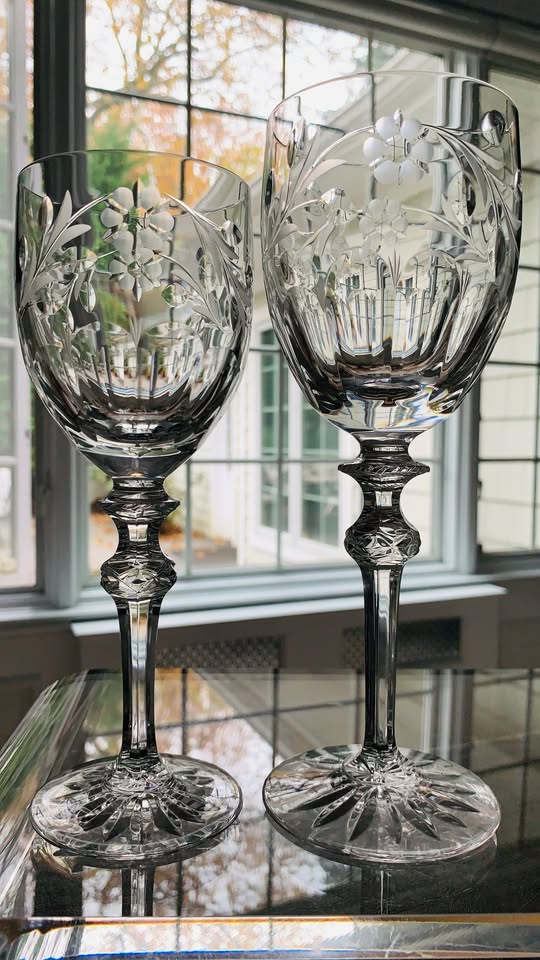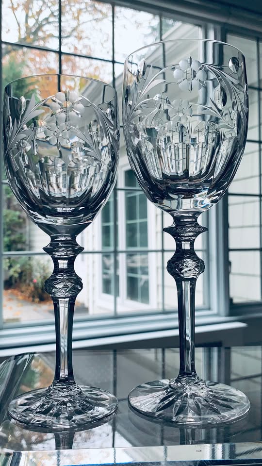 Rogaska Crystal Stemware in “Country Garden” Pattern: Set of 27; Made in Slovenia; MINT