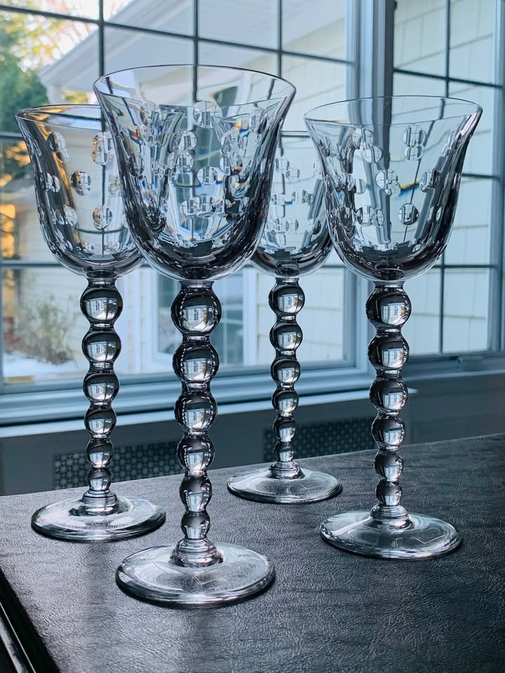Saint-Louis Crystal Wine Glasses – “Bubbles” Pattern – BRAND NEW – Set of 4 – Made in France