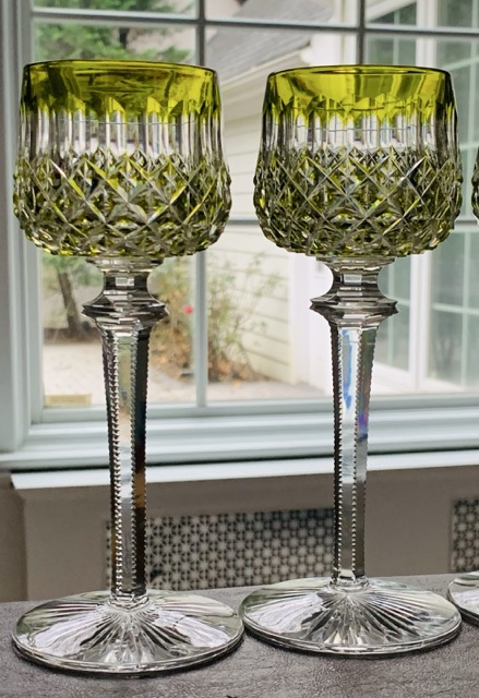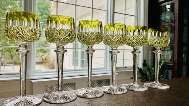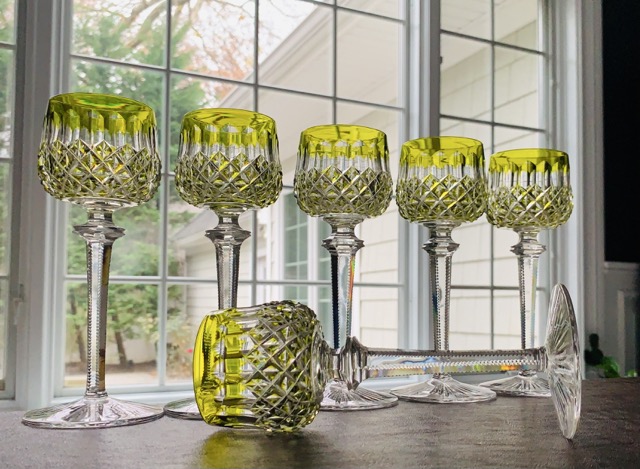 Set of 6 Antique Baccarat Wine Hocks – Chartreuse Color – MINT