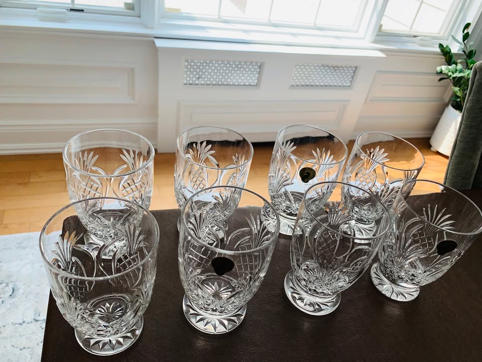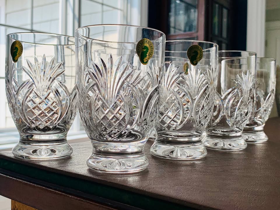 Set of 8 Waterford Crystal Footed Pineapple Hospitality Tumblers; 4.75″ Tall; Made in Ireland