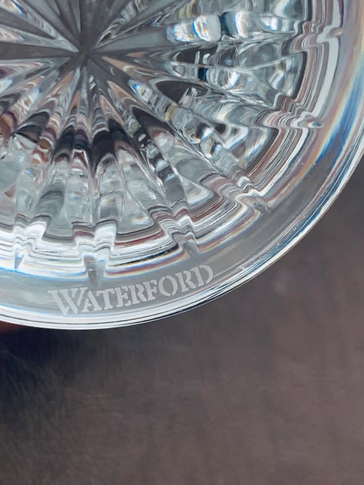 Waterford crystal pineapple hospitality footed tumblers, the perfect addition to any pattern. Each glass has a pineapple cut and gleams with brilliant clarity and measures 4.75 inches tall and 3.125″ wide. 4 have original stickers on and 4 do not, all are flawless.