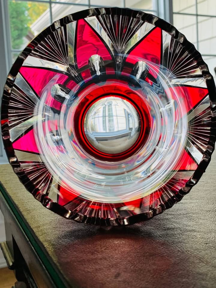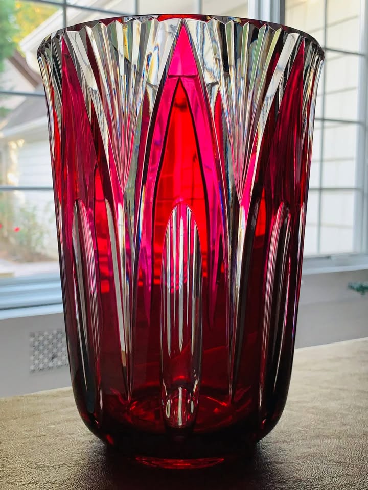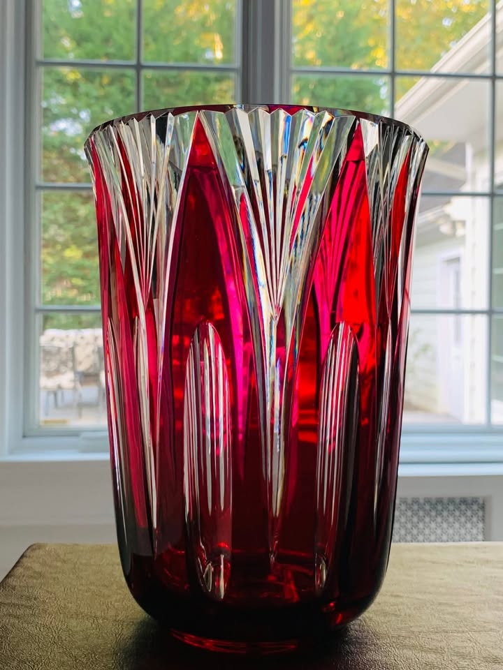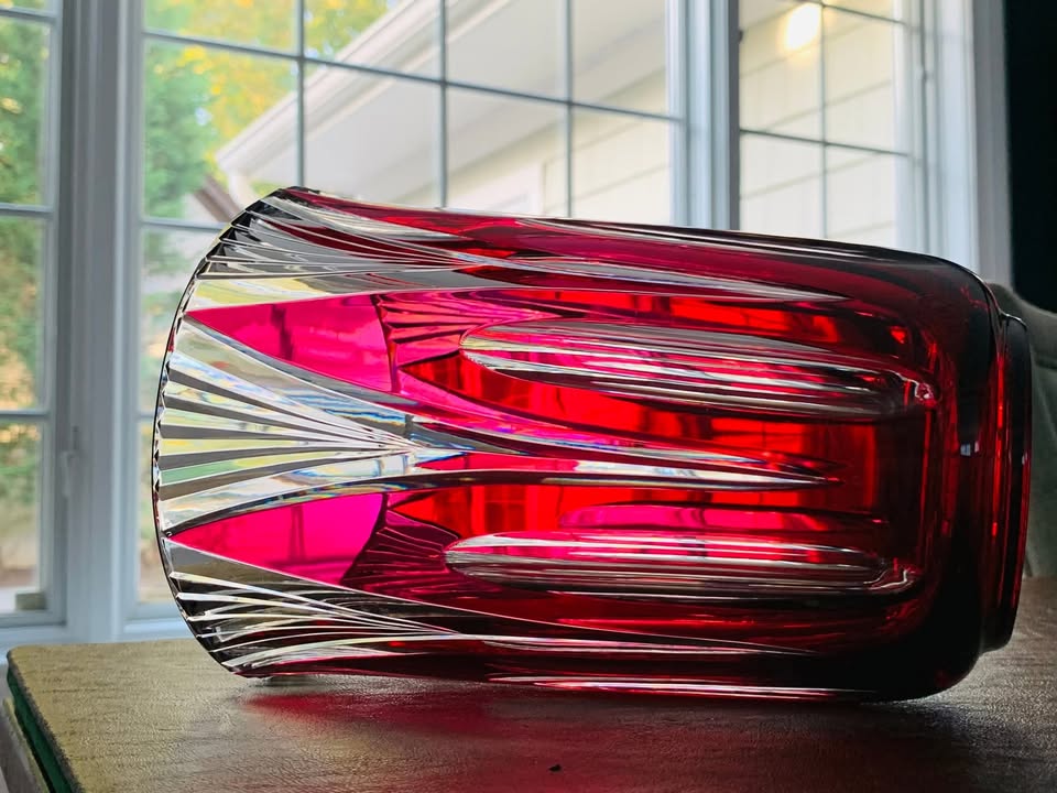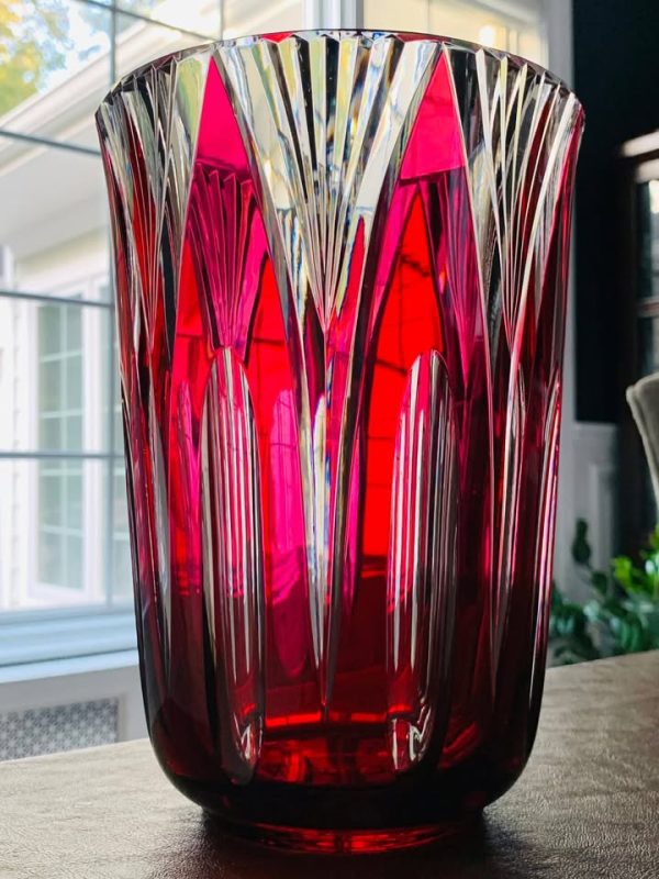 Vintage Val St. Lambert Cranberry Crystal Vase; Made in Belgium 1950s; MINT