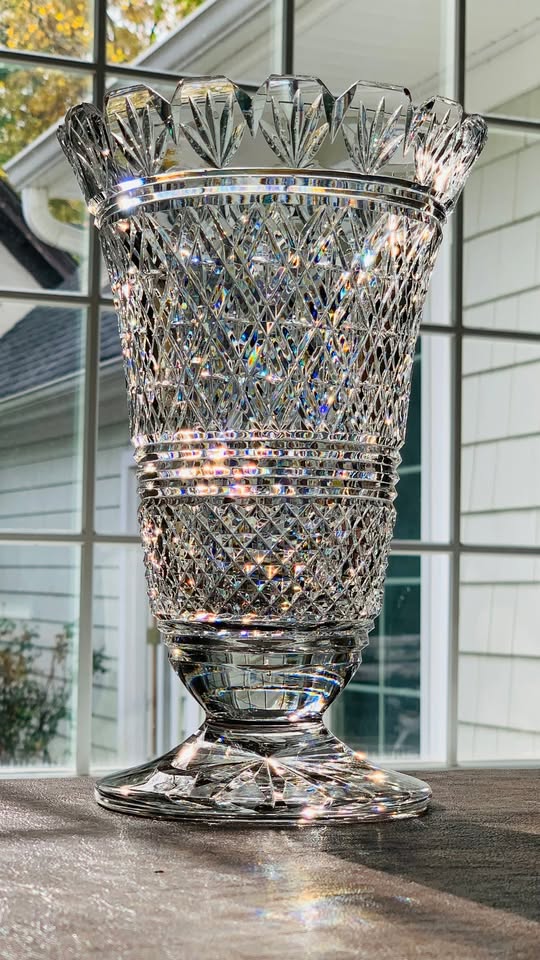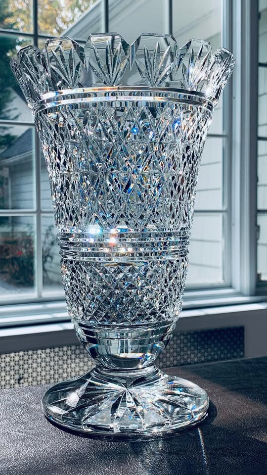 STUNNING! Vintage Waterford vase in Georgian strawberry diamond fan design. Measures 10″ tall and 6.5″ wide. Mint condition. Gothic signature. Made in Ireland.