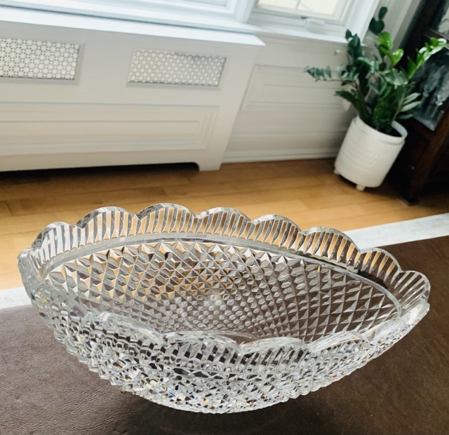 Waterford Master Cutter Oval “Boat” Bowl w/Diamond Cuts; 13″ x 6.5″; Made in Ireland